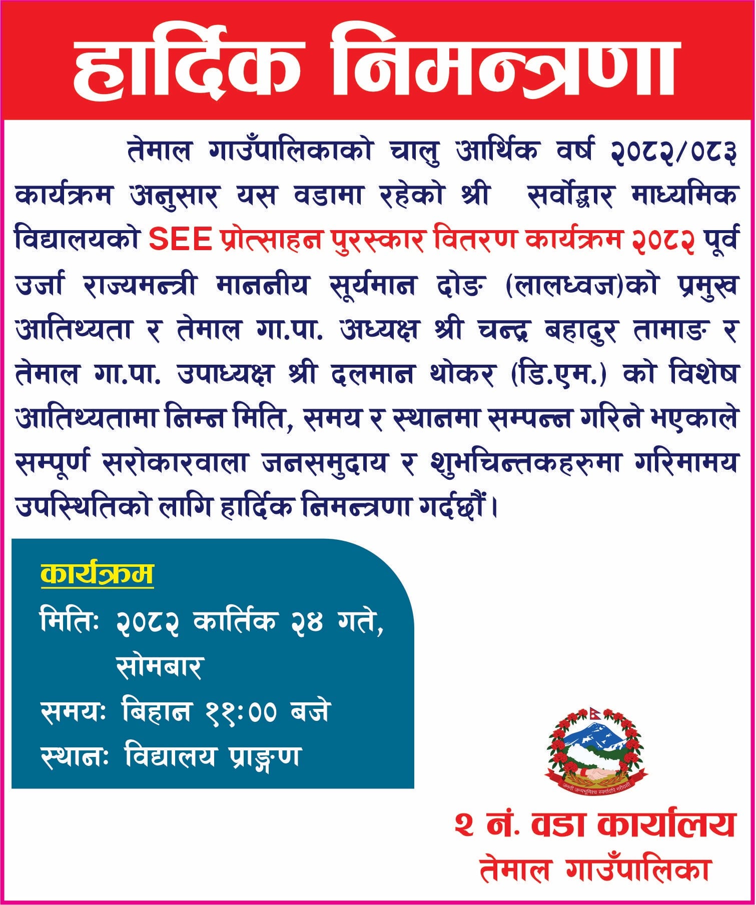 समाचार पढेपछि प्रतिक्रिया लेख्न नभुल्नुहाेला ।
