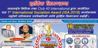 कोरियामा पहिलो ‘ईन्टरनेशनल सोसिअलिज्म अवार्ड-२०१९’ नोभेम्बर १० मा हुने