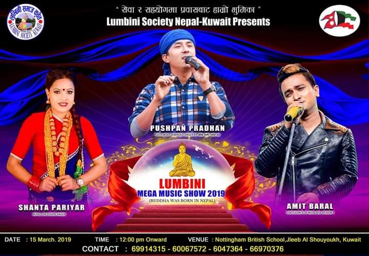 कुवेत । कुवेतमा ‘लुम्बिनी मेगा म्युजिक सो’ कार्यक्रम हुने भएको छ । बैदेशिक रोजगारको सिलसिलामा कुवेत पुगेका नेपालीहरुको सामाजिक संस्था लुम्बिनी समाज कुवेतको अयोजनामा कार्यक्रम हुने भएको हो ।
