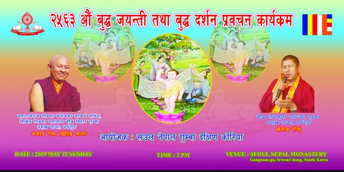 दक्षिण कोरिया । गत बर्ष झै सउल नेपाल गुम्बा दक्षिण कोरियाले “२५६३ औं बुद्ध जयन्ती” मे १२ तारिख आईतबार मनाउने भएको छ ।