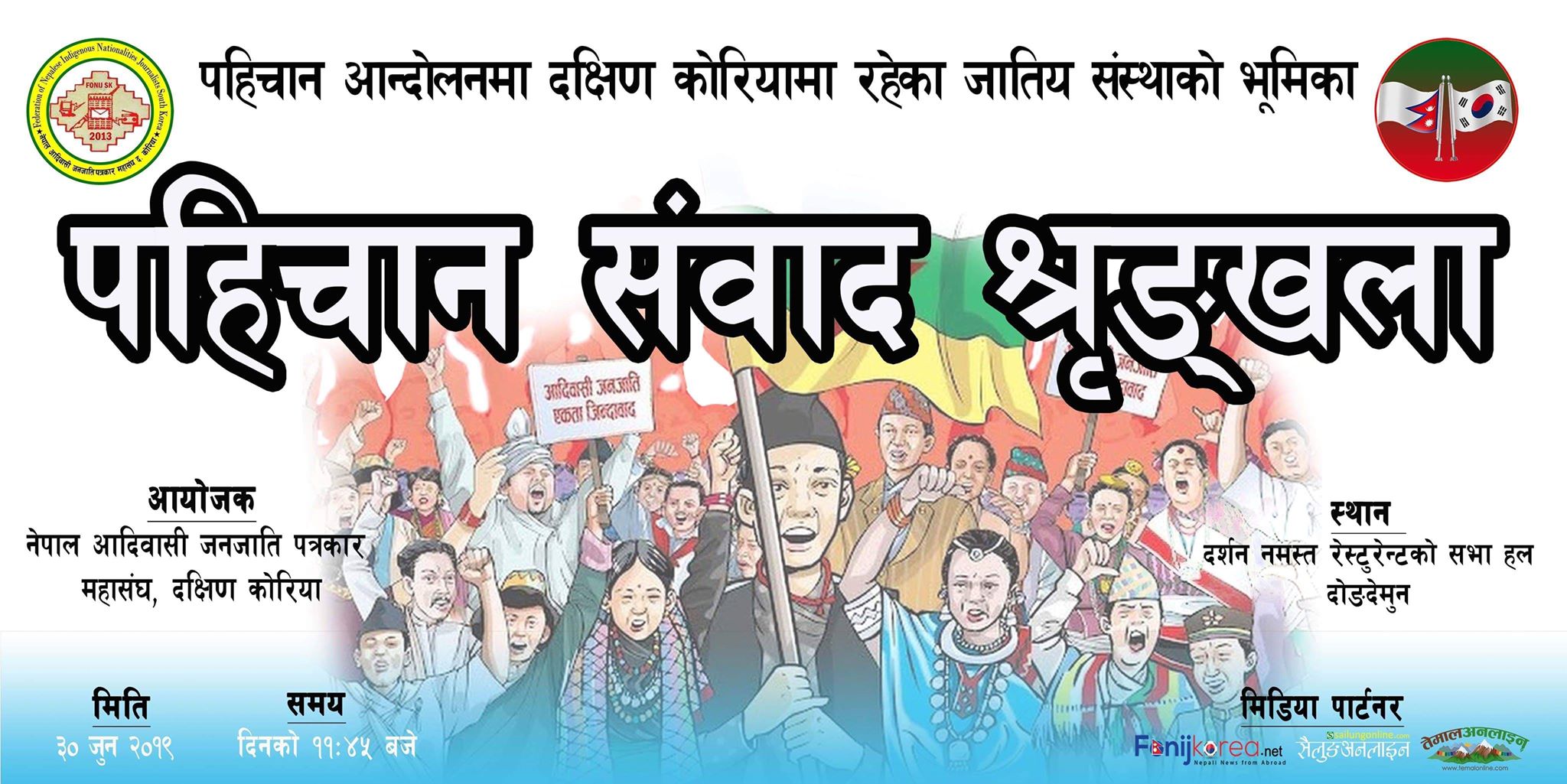 फोनिज कोरियाको आयोजनामा कोरियावासी नेपाली जातीय संस्थाका प्रतिनिधि र अन्य क्षेत्रीय संस्थामा रहेका जनजाति प्रतिनिधिहरुलाई एकै मञ्चमा राखेर आफ्नो पहिचानको लागि प्रवासमा कस्तो भूमिका छ भन्ने विषयमा संवाद गर्ने भएको हो ।