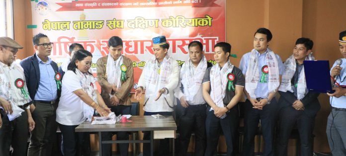 दक्षिण कोरिया । नेपाल तामाङ संघ दक्षिण कोरियाको नवौं कार्यसमितिको वार्षिक साधारणसभा कार्यक्रम दोङ्देमुनमा अवस्थित निक ट्राभलको सभाहल आइतबार सम्पन्न भएको हो । साधारण सभा कार्यक्रम ‘भाषा, संस्कृति र संस्कारको संरक्षण गर्दै ताम्सालिङ प्राप्तिको लागि अघि बढौं ।’ भन्ने नारा राखि कार्यक्रम गरेका थिए ।