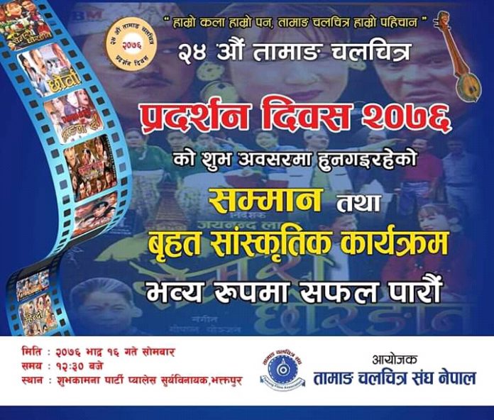भक्तपुर । तामाङ चलचित्र संघका अायोजनामा भदौ १६ गते सोमबार २४ औं तामाङ चलचित्र प्रदर्शन दिवस भक्तपुरमा भव्य रुपले मनाउने भएको छ।