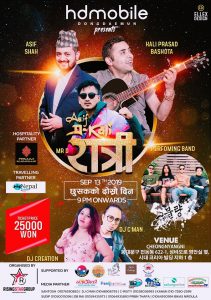 ‘कालीप्रसाद बास्कोटाले गाएका र संगीत दिएका चर्चित गीत गाउने छन् साथै मिस्टर डिको प्रस्तुति हेर्न पाइनेछ । साथै फुल्लाङ व्यान्डको प्रस्तुति रहनेछ भने डिजे सिम्यान र डिजे क्रियसनले पनि आफ्नो कला देखाउने छन् ।