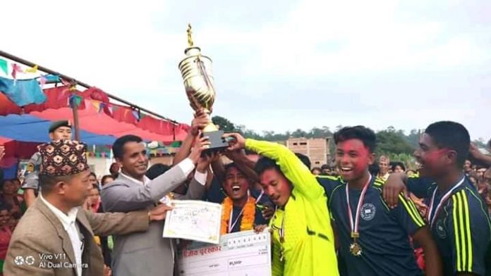 हेटौंडा । प्रथम राष्ट्रिय माझी गोल्डकप फूटबल प्रतियोगिताको उपाधिमा रामेछापले कब्जा जमाएको छ । मकवानपुरको बकैया गाउँपालिका जुरेलीस्थित खेल मैदानमा आज भएको फाइनल स्पर्धामा सिन्धुलीलाई ३–० गोल अन्तरले पराजित गर्दै रामेछापले उपाधि आफ्नो पोल्टामा पारेको हो ।