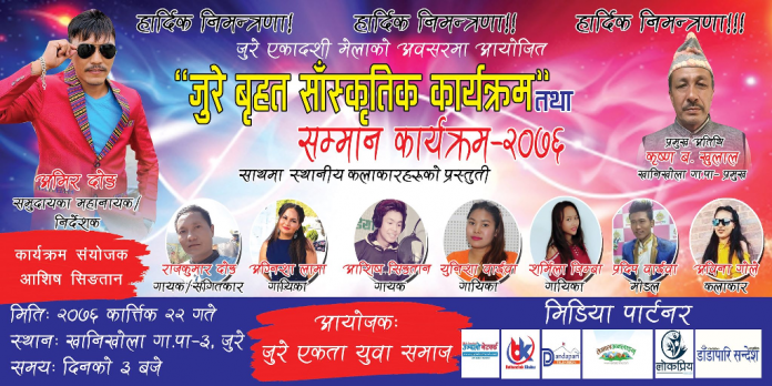 जुरे एकता युवा समाजले आयोजना गरेको उक्त कार्यक्रमको संयोजक गायक आशिष सिंतानले गरेका छन ।