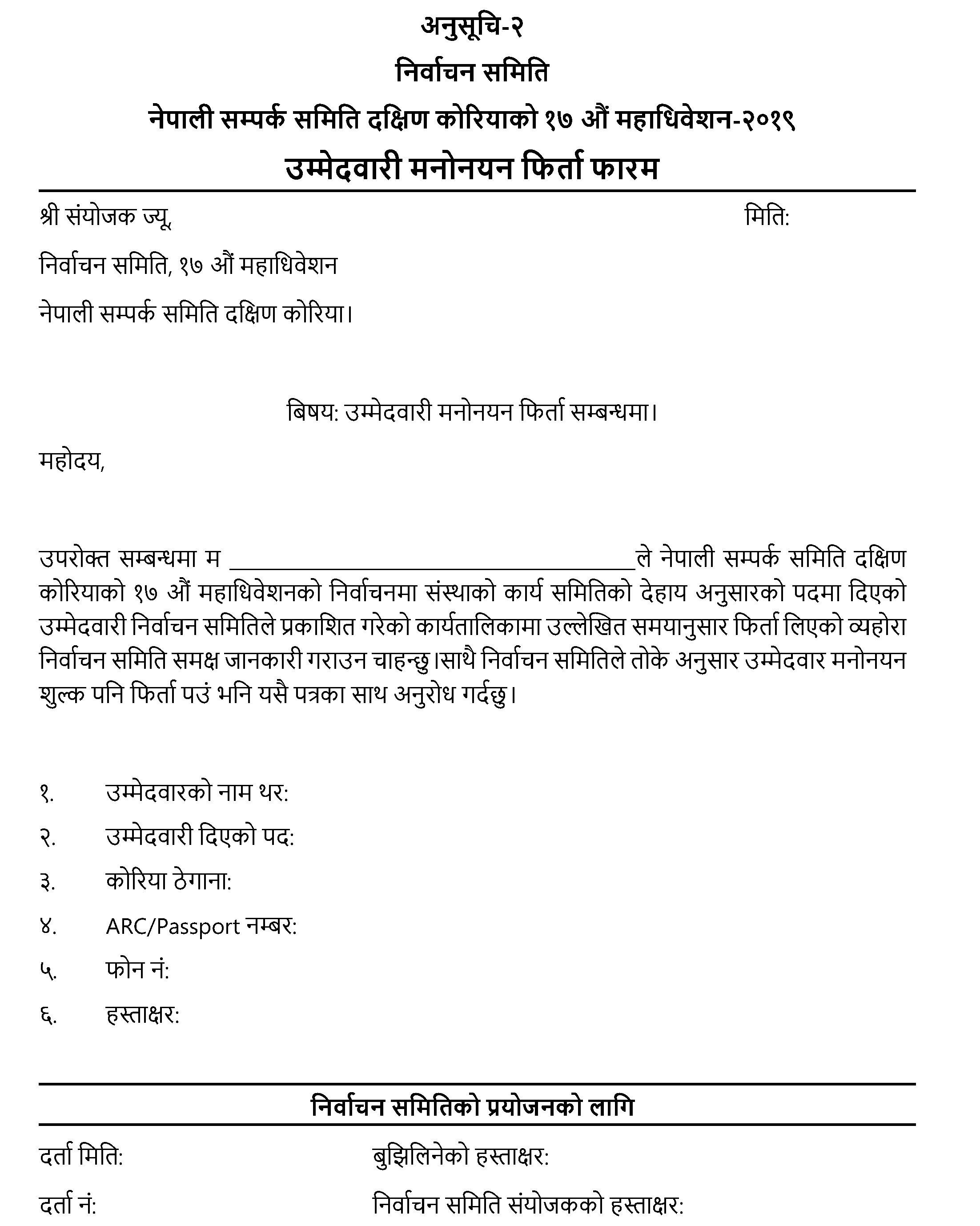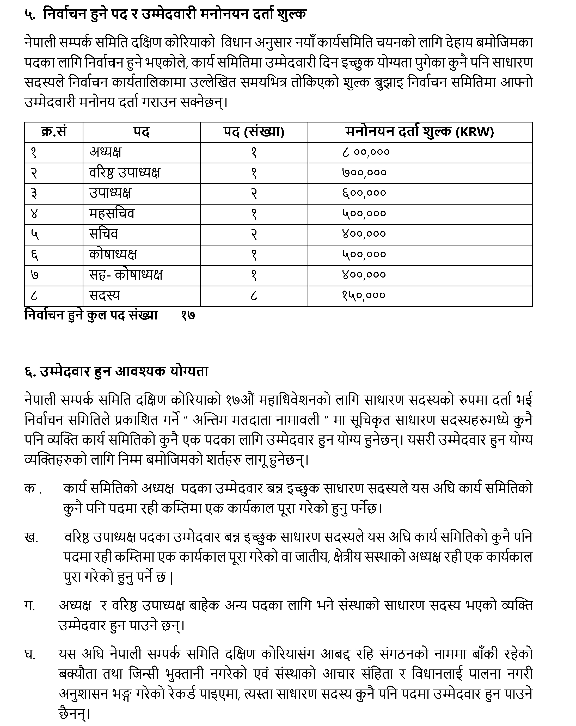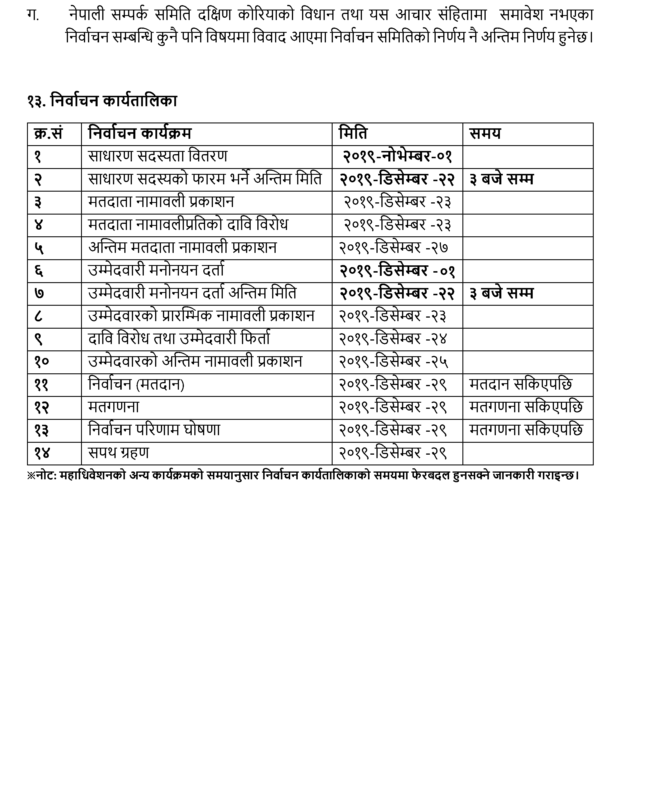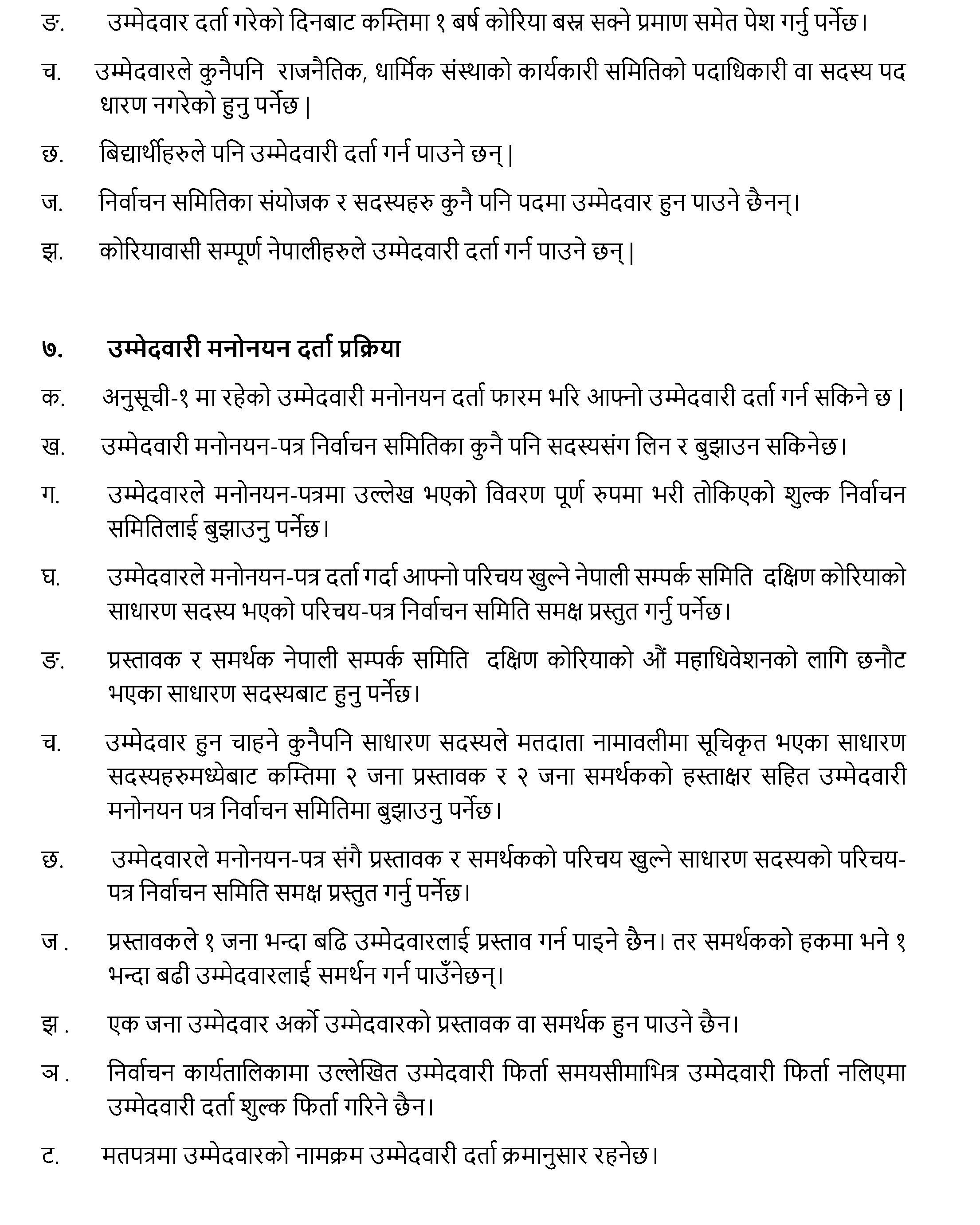 साथै निर्वाचन आचारसंहितासहितः निर्वाचन हुने पद, उम्मेदवारी मनोनयन दर्ता शुल्क, उम्मेदवार हुन आवश्यक योग्यता, उम्मेदवारी मनोनयन दर्ता प्रकृया, मतदान प्रकृया, मतगणना, निर्वाचन परिणाम, निर्वाचन कार्यतालिकालाइ प्रकाशित गरेको निर्वाचन समितिका सदस्य चित्र बहादुर मोक्तानले जानकारी दिनुभयो ।