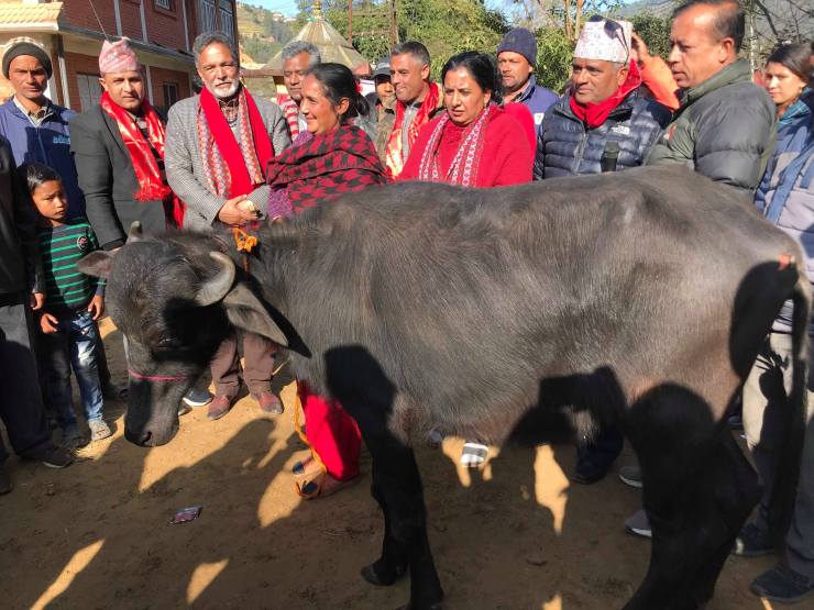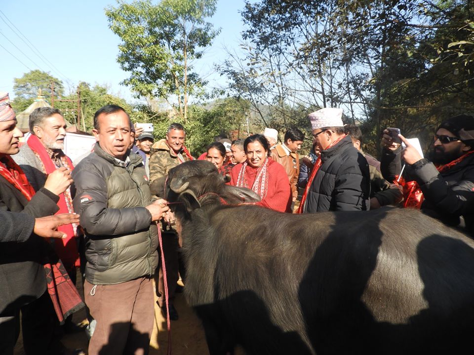 प्रदेश सभा सदस्य बसुन्धरा हुमागाईले किसानलाई पाडी हस्तान्तरण गरेर वितरणको उद्घाटन गरेका थिए । गोलाप्रथाबाट छनौट भएकी भगवती सापकोटालाई पाडी हस्तान्तरण गर्दै सांसद हुमागाईंल मुलुकको विकासका लागि भैसी संरक्षण अभियानले महत्वपूर्ण योगदान पुग्ने बताए ।