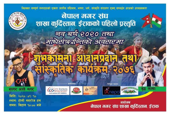 इराक । वैदेशिक रोजगारको सिलसिलामा इराक पुगेका नेपालीहरुले नेपाल आईडलका दुई कलाकारहरु सागर आले र बुद्ध लामाको साथमा माघे संक्रान्ति मनाउने भएको छ । नेपाल मगर संघ शाखा कुर्दिस्तान, इराकको आयोजनामा शुभकामना आदान प्रदान तथा साँस्कृतिक कार्यक्रमको आयोजना गरी माघे संक्रान्ति मनाउन लागेको हो ।