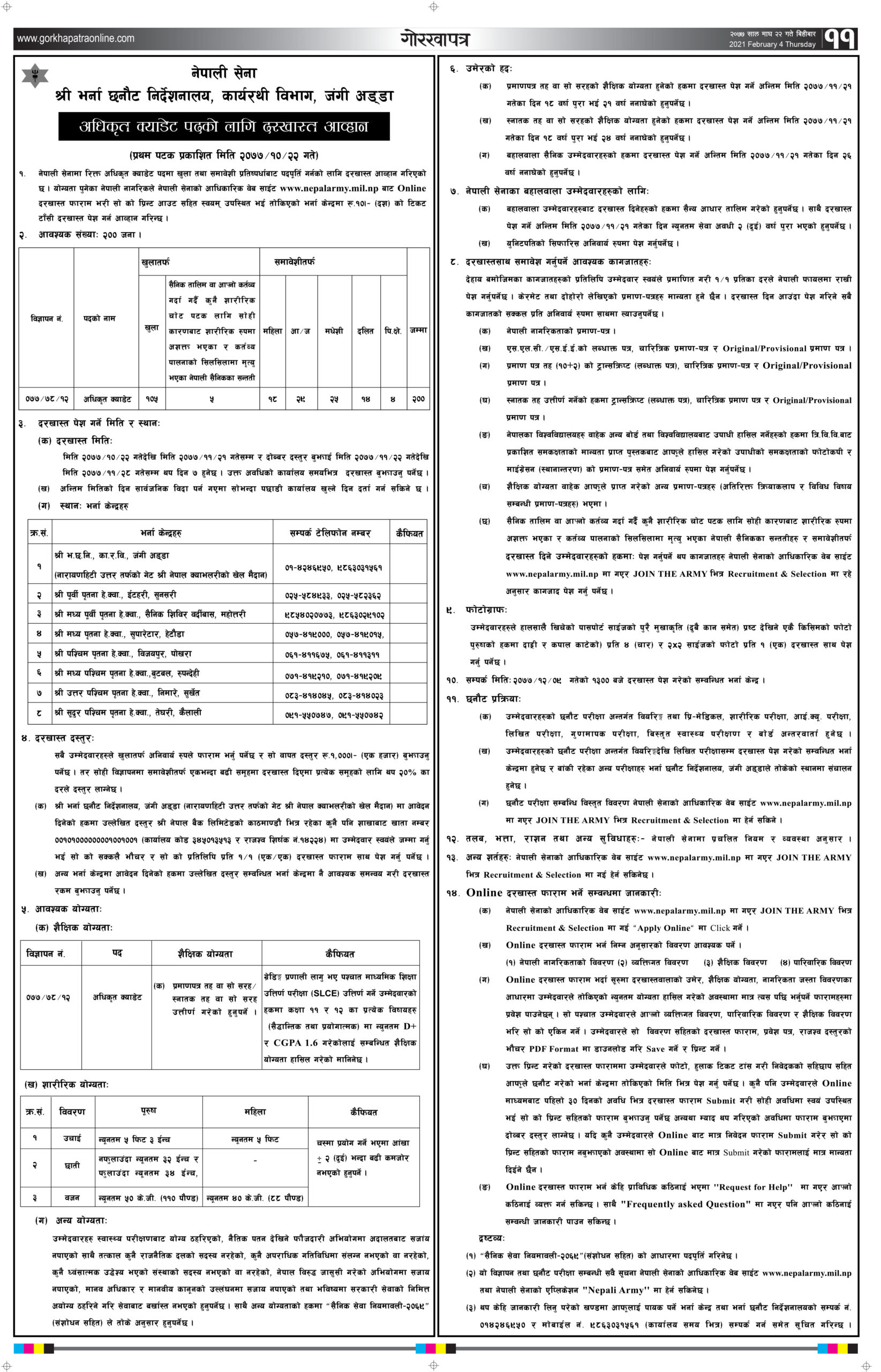 नेपाली सेनाको भर्ना छनौट निर्देशनालय, कार्यरथी विभाग जंगी अड्डाले २ सय जना अधिकृत क्याडेट (क्याप्टेन)