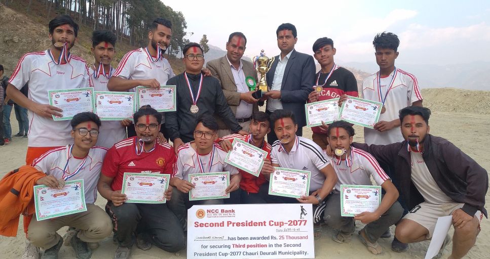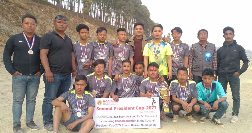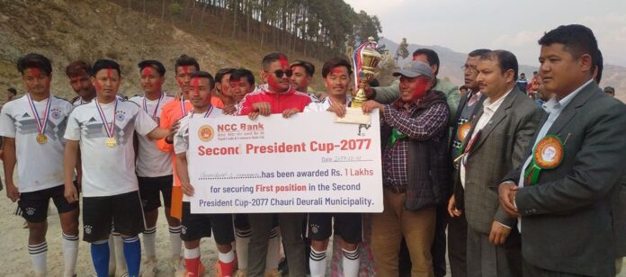 चौंरीदेउराली । काभ्रे जिल्लाको चौंरीदेउराली गाउँपालिकाले आयोजना गरेको अध्यक्ष गोल्ड कप फुटबल प्रतियोगिता–२०७७ को उपाधि वडा नं. २, नाग्रेगगर्चेले हातपार्न सफल भएको छ । वडा नं. ३ माझिफेदाको काफ्ले खेलमैदानमा भएको प्रतियोतिामा वडा नं. ७, मादनलाई २ः०० गोलले पराजित गरेपछि उपाधि हातपार्न सफल भएको हो ।