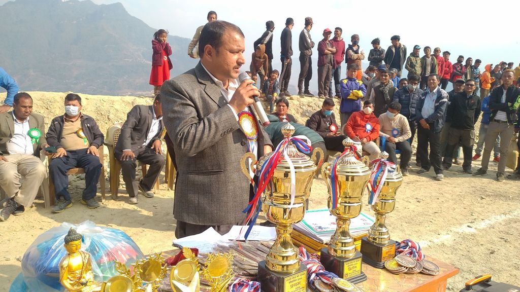 यसैबीच कार्यक्रमलाई सम्बोधन गर्दै गाउँपालिका अध्यक्ष दिननाथ गौतमले खेलमा हारजीत स्वभाविक भएको बताउँदै विजेता खेलाडीहरुलाई नमात्तिकन अझै अघि बढ्नुपर्ने र हार बेहोरेका खेलाडीहरुलाई थप मजवुत भई अघि बढ्नुपर्नेमा जोड दिए । ‘क्षमता विकास तथा प्रगतिको सिमाना हँुदैन, झनै बढाउँदै लैजाने हो, कमजोरी बेहोर्नेहरुले सच्याउदै अघि बढ्ने हो ।’ अध्यक्ष गौतमले भने, ‘खेलमा हारजीत हुन्छ नै । जित्यो भनेर मात्तिनु पनि हुँदैन र हार भयो भनेर आत्तिनु पनि हुँदैन ।’