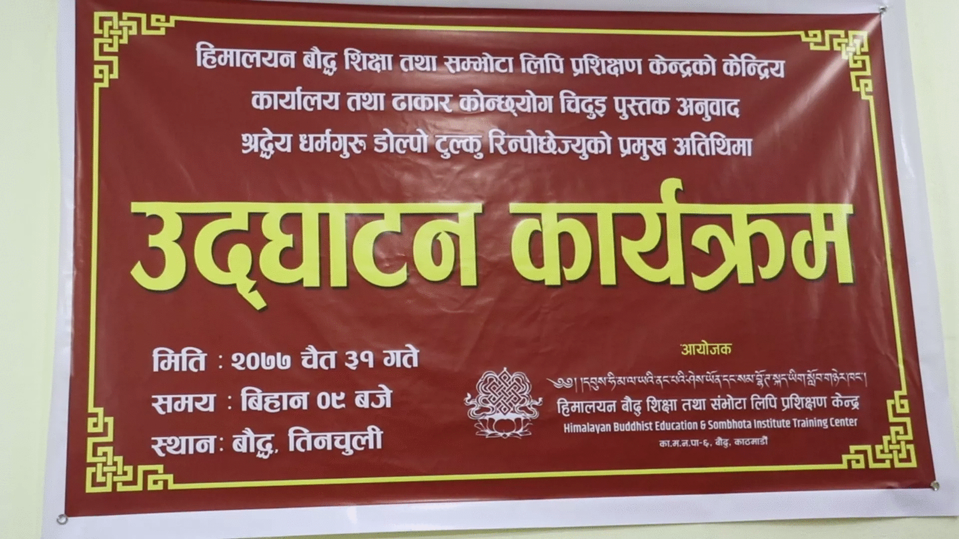 काठमाडौं ।बौद्ध शिक्षा र सम्भोटा लीपीको प्रशिक्षणलाई गाउँगाउँसम्म पुर्याउने हेतुले गठित संस्थाको केन्द्रिय कार्यलय बौद्ध तिनचुलिमा स्थापनाभएको छ ।