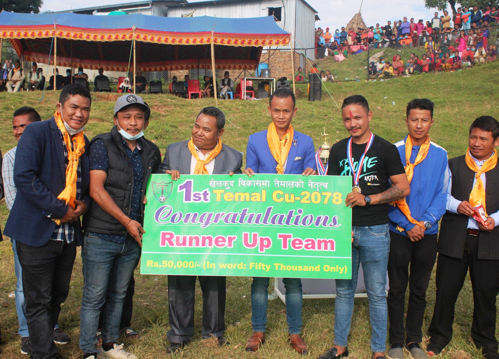 ‘प्रथम तेमाल कप–२०७८’ को समापन कार्यक्रममा संघीय सांसद गंगाबहादुर तामाङ (बमध्वज) पुगेका थिए । विजेता उपविजेता टिम र खेलाडीहरुलाई सांसद तामाङले ट्रफि, प्रमाणपत्र र नगद पुरस्कार प्रदान गरेका थिए ।