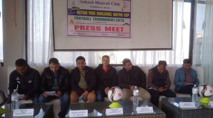 काभ्रेको धुलिखेलमा नेपाल आइस धुलिखेल मेयर कप फटबल प्रतियोगिता –२०७८ हुने भएको छ । धुलिखेलमा रहेको आकाश भैरव क्लवको आयोजनामा उक्त प्रतियोगिता हुने भएको हो । खेल मंसिर २६ गतेदेखि पौष मसन्तसमम सञ्चालन हुने एक पत्रकार सम्मेलन गरी आयोजकले जानकारी दिएको छ ।