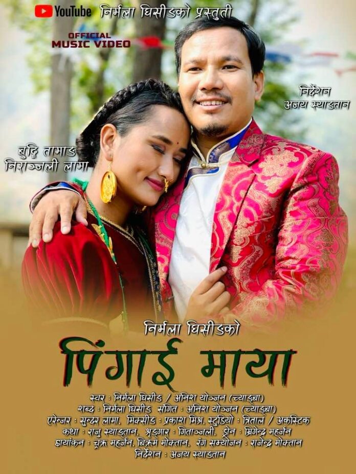 चर्चित गायिका निर्मला घिसिङले नयाँ गीत ‘पिंगाई माया’ म्युजिक भिडियो सार्वजनिक भएको छ । आफ्नै युट्युब च्यानलमार्फत घिसिङले नयाँ वर्षको अवसर पारेर सार्वजनिक गरेकी हुन् ।