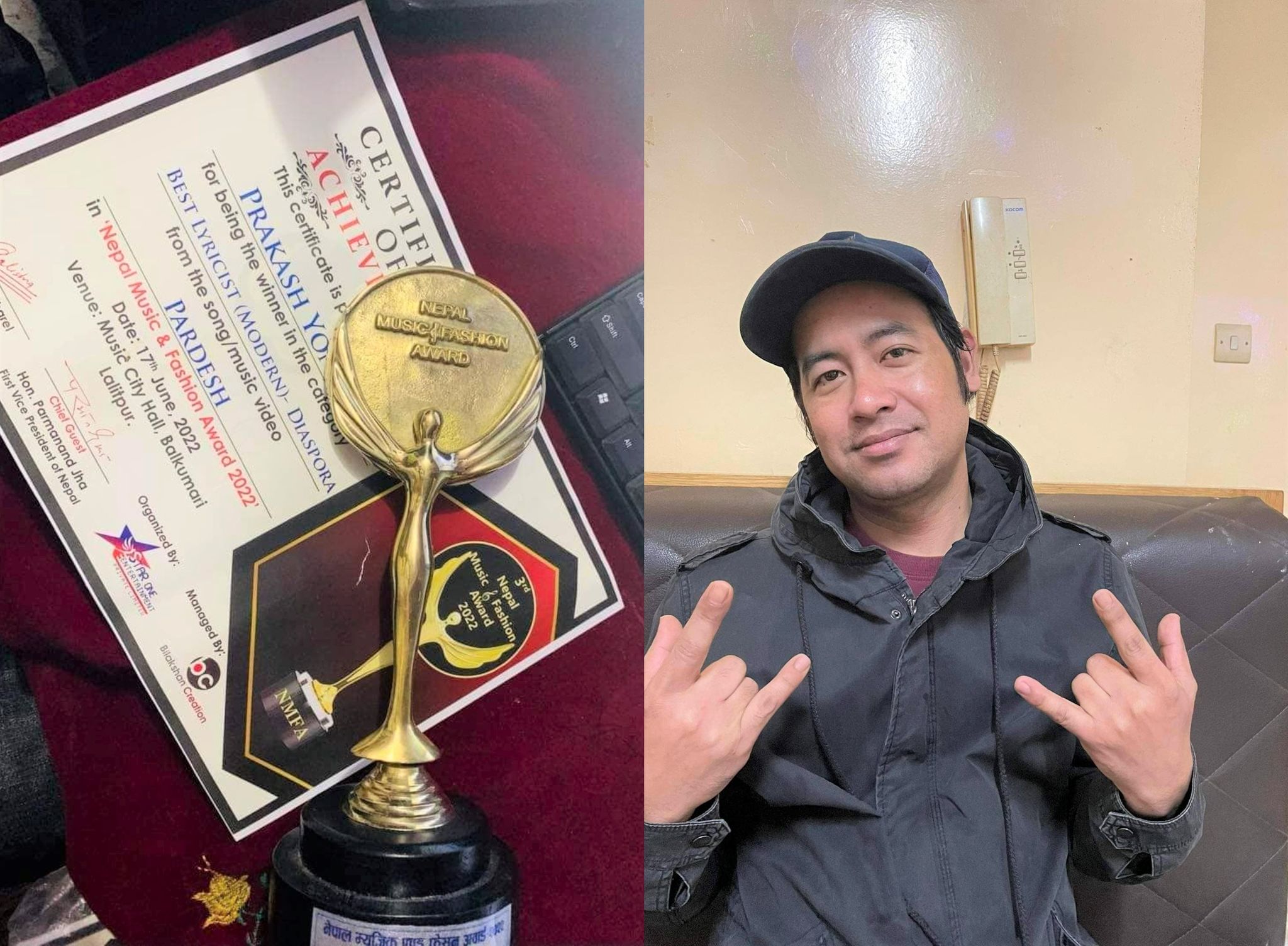 काठमाडौँ – गीतकार प्रकाश योन्जनले यो वर्षको संस्करणमा नेपाल म्युजिक एण्ड फेसन अवार्ड २०२२ मा सर्वोत्कृष्ट गीतकारको उपाधि पाएका छन् । यसवर्ष ‘परदेश’ गीतका लागि उनलाई उक्त अवार्ड प्रदान गरिएको हो।