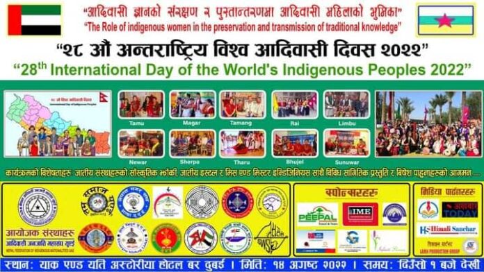 युएई । वैदेशिक रोजगारको शिलाशिलामा युएईमा रहेका आदिबासी जनजातिहरुको साझा संस्था आदिवासी जनजाति महासंघ युएईले २८ औं अन्तराष्ट्रिय विश्व आदिवासी दिवसको अबसरमा आदिबासी महोत्सव (२०२२ कार्यक्रम गर्ने तयारी गरेका छन् ।
