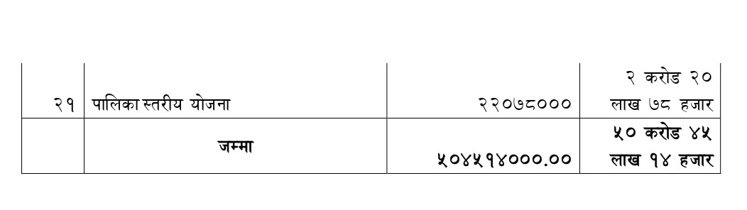 विनियोजन हुने बजेट र वार्षिक कार्यक्रमलाई निति तथा बजेटका प्रथामिकता र उद्देश्यसँग तादात्म्यता कायम गर्ने अधिकतम प्रयास गरिएको छ ।