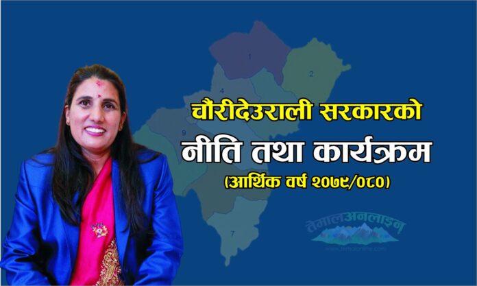 चौँरीदेउराली गाउँपालिकाका अध्यक्ष श्री रेणुका चौंलागाईं ज्यूले १० औँ गाउँसभामा प्रस्तुत गर्नुभएको को आ.व. २०७९/ 0८० को वार्षिक नीति तथा कार्यक्रम