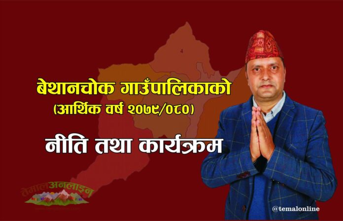 बेथानचोक गाउँपालिकाको गाउँसभामा बेथानचोक गाउँपालिकाका अध्यक्ष श्री भगवान अधिकारी ज्यूबाट प्रस्तुत आ.ब. २०७९/८० को नीति तथा कार्यक्रम