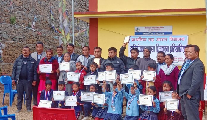 प्रतियोगितामा प्रथम, दोस्रो र तेस्रो भएको विद्यालयका विद्यार्थीहरुलाई वडा अध्यक्ष प्रेम लामाले पुरस्कार वितरण गरेका थिए ।