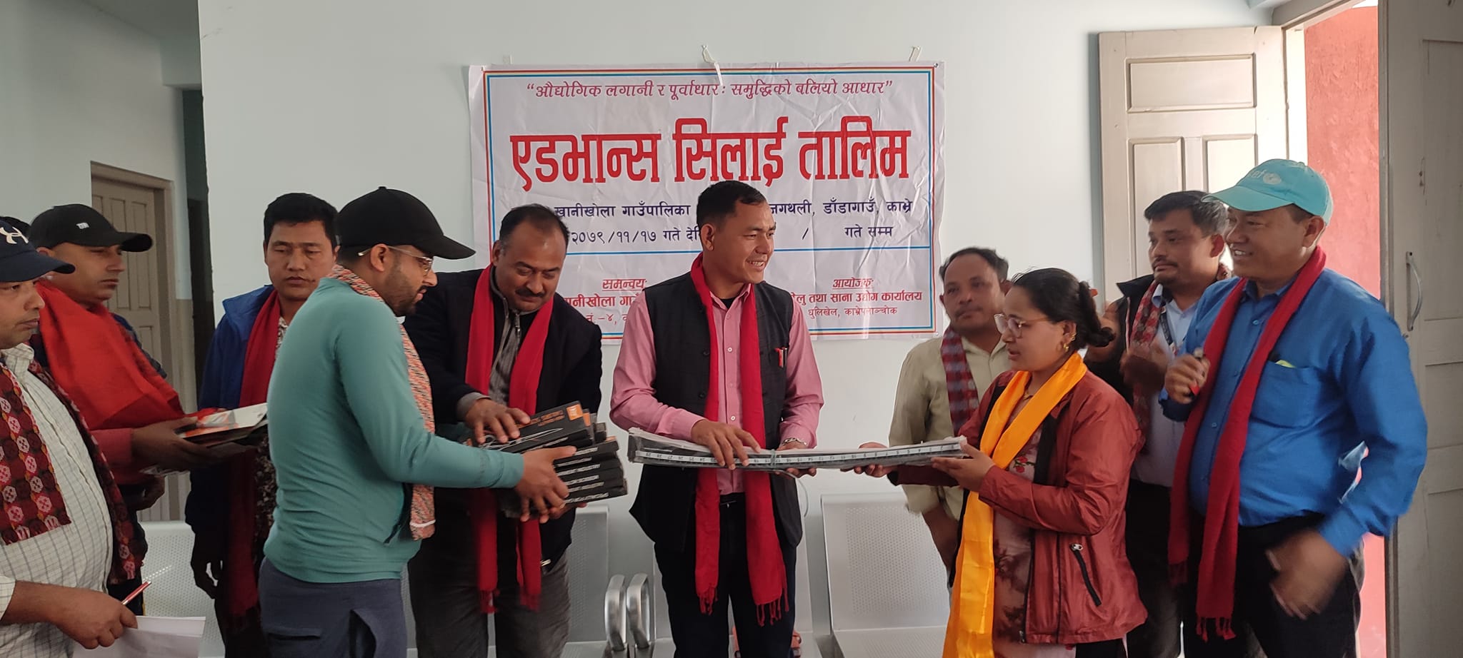 बुधबारदेखी सुरु भएको ३ महिने एड्भान्स सिलाई कटाई तालिमको उद्घाटन वडाअध्यक्ष निशान मोक्तान तामाङले गरेका छन् । घरेलु तथा साना उद्योग धुलिखेलका प्रमुख यादबनाथ आचार्यको अध्यक्षतामामा भएको कार्यक्रममा बिशिस्ट अतिथिमा खानिखोला गाउँपालिका शिक्षा शाखाको सहजकर्ता होम बहादुर वाइबा, मुख्य प्रशिक्षक नरु थिङ र कुमारी मा.बि. जगथली को प्र.अ. लाल बहादुर घिसिङ लगायले आ–आफ्नो धारणा राखेका