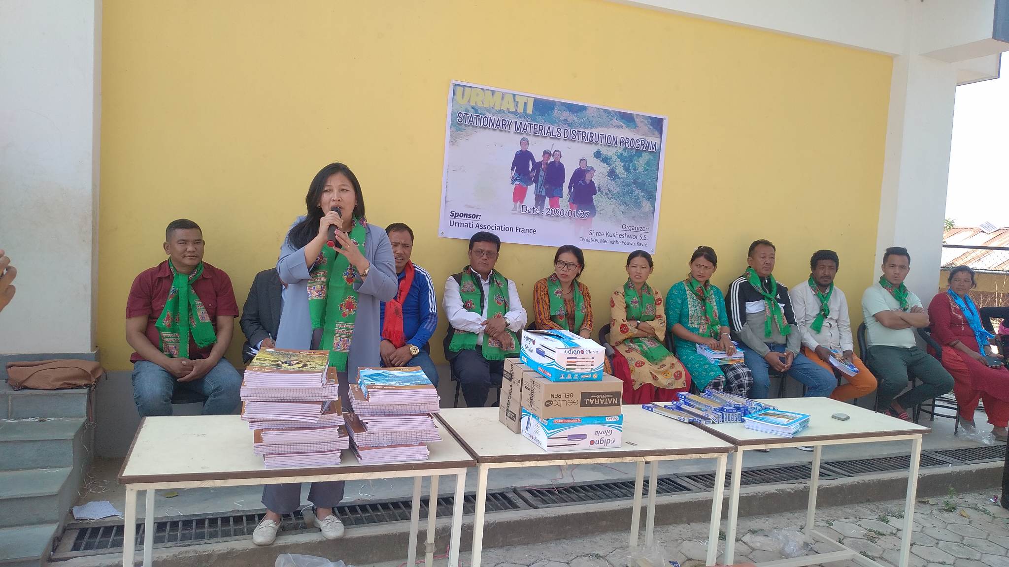 यसैबीच वडा नं. ९ का वडा अध्यक्ष चन्द्रबहादुर लामाले विद्यालयमा शैक्षिक सामाग्री वितरण गरेकोमा उर्मती एसोशियसन फ्रान्सका अध्यक्ष तामाङ र संस्था प्रति आभार प्रकट गर्दै धन्यवाद समेत ज्ञापन गरे ।