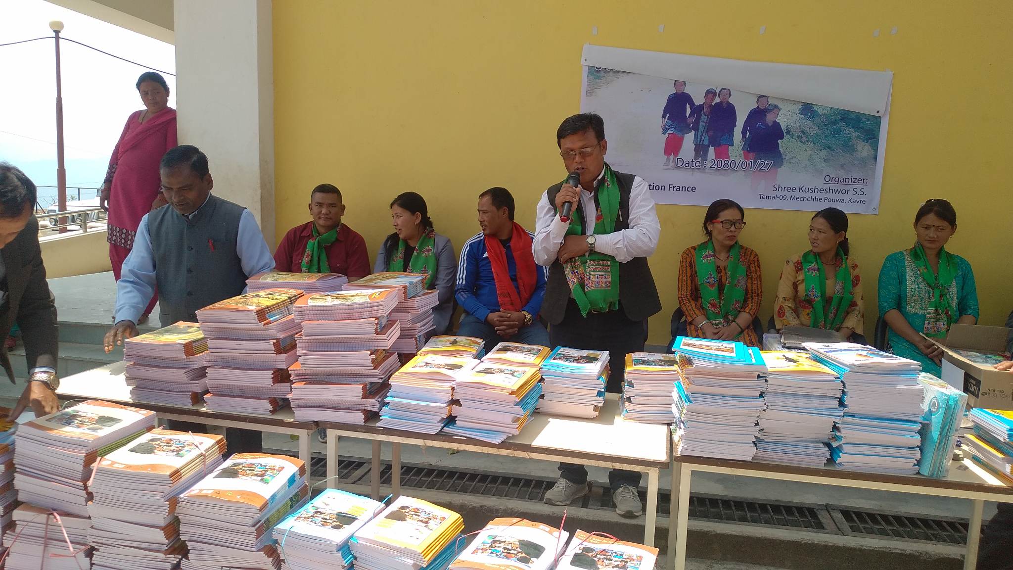 काभ्रे जिल्लाको तेमाल गाउँपालिका वडा नं. ९ मा रहेका कुशेश्वर माविका विद्यार्थीहरुलाई उर्मती एसोशियसन फ्रान्सले शैक्षिक सामाग्री वितरण गरेको छ । बुधबार संस्थाका अध्यक्ष तथा समाजसेवी पासाङ डोल्मा तामाङले एक कार्यक्रमका बीच शैक्षिक सामाग्री वितरण गरेका हुन् ।