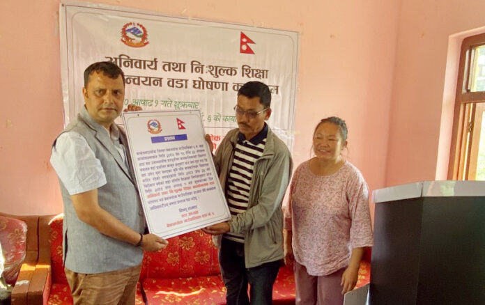 वडा अध्यक्ष विष्णु तामाङले वडालाई अनिवार्य तथा निःशुल्क शिक्षा कार्यान्वयन वडा घोषणा गर्न गाउँपालिका समक्ष प्रस्ताव पेश गरेका थिए । सोही अनुसार गाउँपालिका अध्यक्ष अधिकारीले वडालाई अनिवार्य तथा निःशुल्क शिक्षा कार्यान्वयन वडा घोषणा गरेका हुन् ।