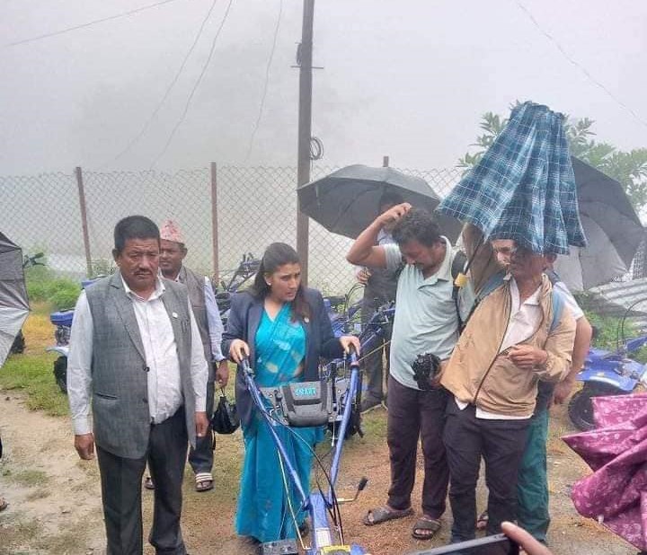 सो अवसरमा अध्यक्ष चौंलागाईं र उपाध्यक्ष तामाङले ९ वटै वडाका किसानहरुलाई मिनी टिलर ५५ वटा र मकै छोडाउने मेशिन १९ वटा वितरण गरेका छन् ।