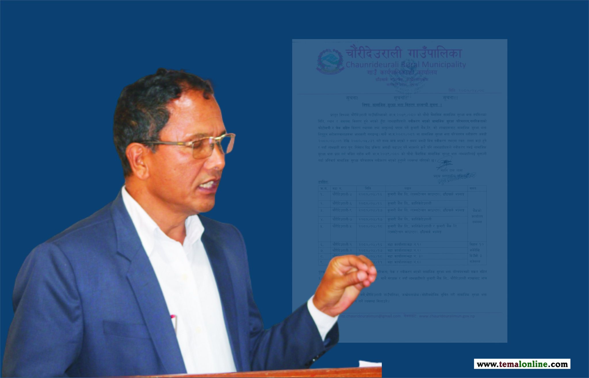 चौंरीदेउराली– काभ्रे जिल्लाको चौंरीदेउराली गाउँपालिकाले वडा–वडामा पुगेर सामाजिक सुरक्षा भत्ता वितरण गर्ने मिति तय गरेको छ । निर्वाचनको क्रममा गाउँपालिका अध्यक्ष रेणुका चौंलागाईंले प्रतिबद्धता जनाए मुताबिक सामाजिक सुरक्षा भत्ता वडा–वडामा पुगेर वितरण गर्ने भएको हो ।