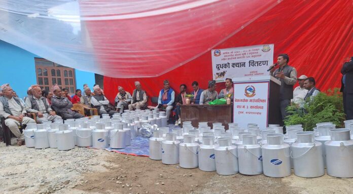 बेथानचोक– काभ्रे जिल्लाको बेथानचोक गाउँपालिकाले दुग्ध उत्पादक कृषकहरुलाई दुध उत्पादनमा प्रोत्साहन गर्ने उद्देश्यले क्यान वितरण गरिएको छ । सोमबार बेथानचोक गाउँपालिका वडा नं. ३ का १ सय ५० जना कृषकहरुलाई क्यान वितरण गरिएको हो ।