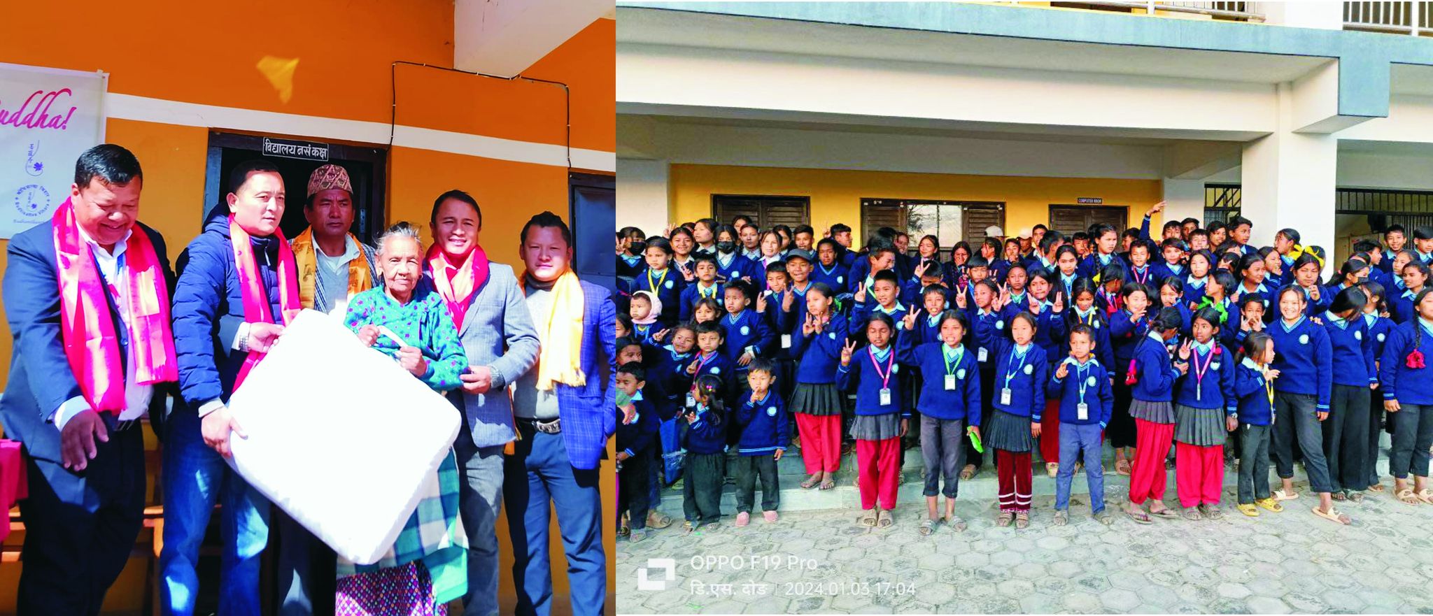 तेमाल– काभ्रे जिल्लको तेमाल गाउँपालिकाका विभिन्न विद्यालय र गाउँका ज्येष्ठ नागरिकहरुलाई कान्छीमाया फाउन्डेशनका अध्यक्ष डा. दिलबहादुर तामाङले न्यानो वितरण गरेका छन् । बुधबार (आज) अध्यक्ष डा. तामाङले गाउँपालिकाका वडा नं. ३ र ५ का ज्येष्ठ नागरिकहरुलाई सिराक र वडा नं. ९ का दुई विद्यालयका विद्यार्थीहरुलाई स्वीटार वितरण गरेका हुन् ।