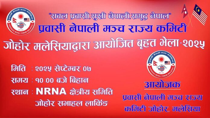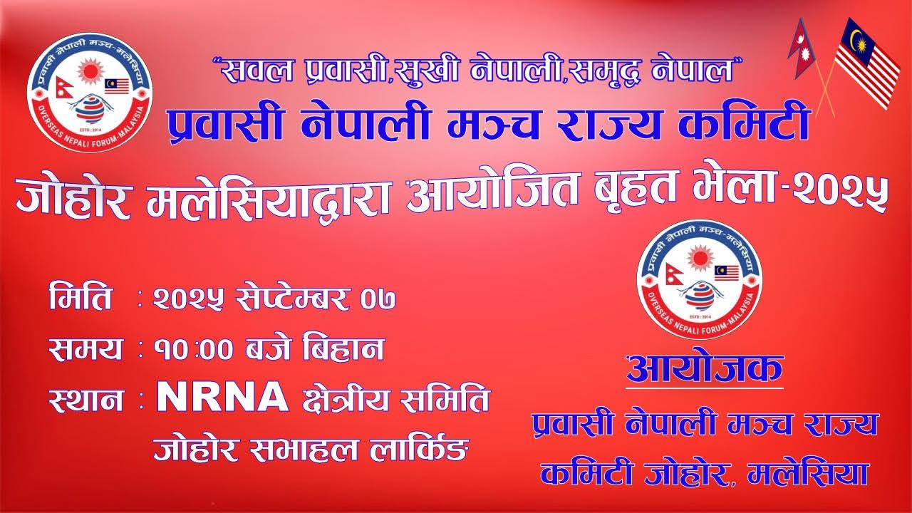 जोहोर, मलेसिया — “सबल प्रवासी, सुखी नेपाली, समृद्ध नेपाल” भन्ने मूल नाराका साथ प्रवासी नेपाली मञ्च, जोहोर राज्य कमिटीद्वारा २०८५ सेप्टेम्बर ७ गते एक भव्य बृहत भेलाको आयोजना गरिँदैछ।