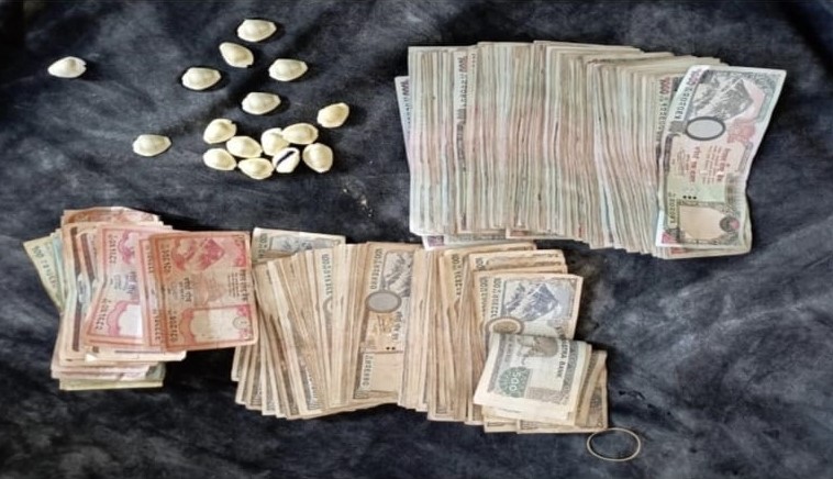 प्रहरीले घटनास्थलबाट नगद रु. २ लाख ३८ हजार २ सय १५ रुपैयाँ र कौडा–१६ थान बरामद गरेको जिल्ला प्रहरी कार्यालय काभ्रेका सूचना अधिकारी प्रहरी नायब उपरिक्षक रविन बिष्टले जानकारी दिएका छन्।